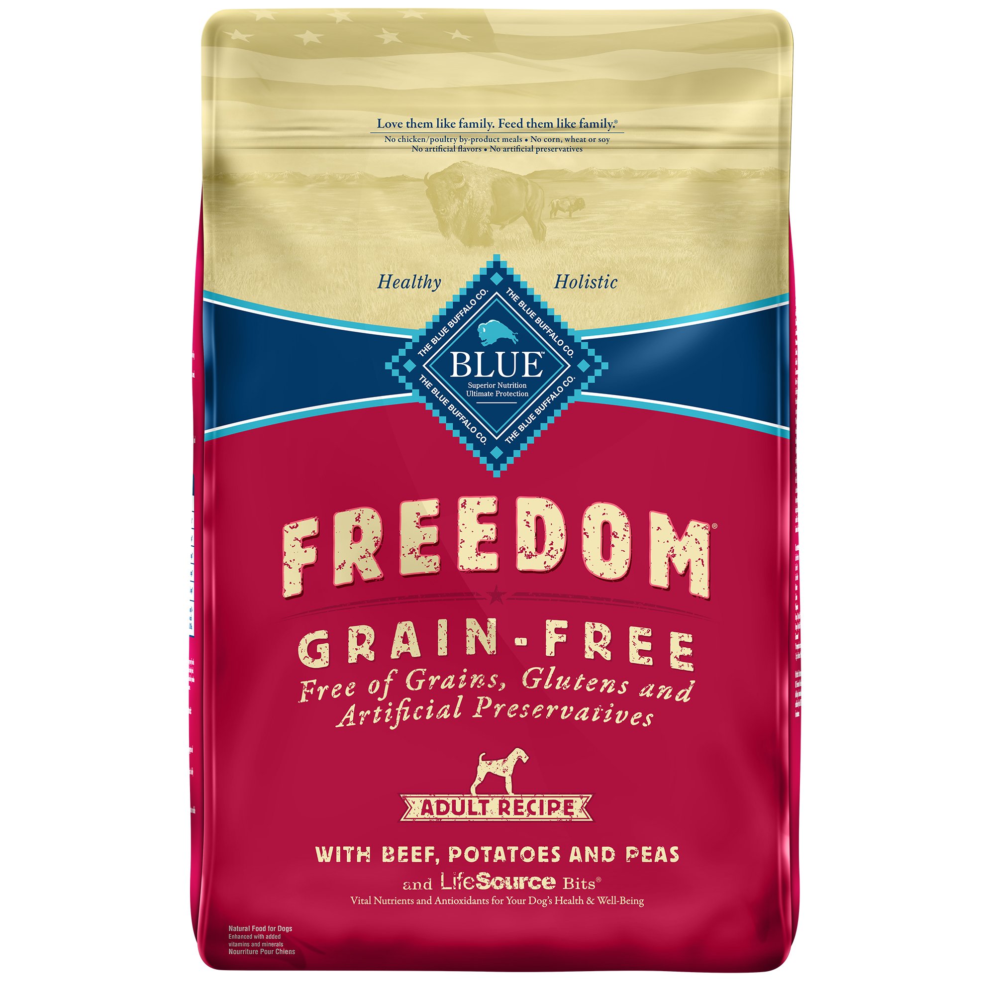 Blue buffalo freedom dog food. With real meat as the first ingredient plus wholesome fruits and vegetables each blue freedom recipe offers pet parents a healthy way to feed their best friend a grain free diet. Blue buffalo states that the blue freedom line of foods is grain free and that it has no glutens or artificial preservatives. Browse freedom dog food. Made from the finest natural ingredients enhanced with vitamins and minerals this mouthwatering recipe starts with high quality beef and is packed with healthy fruits and vegetables.