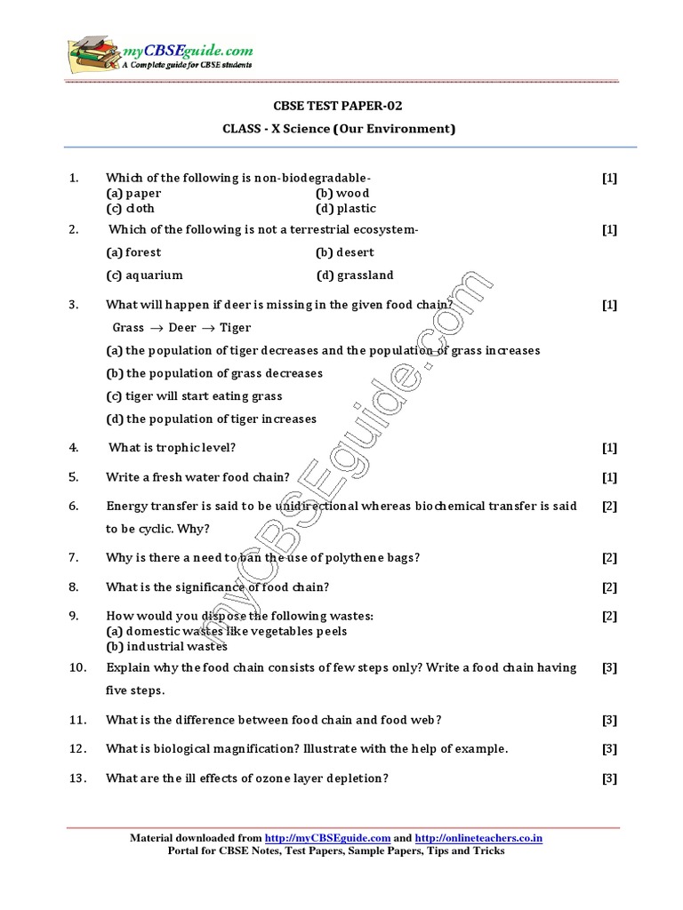 10 Science Our Environment Test 02