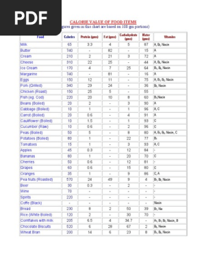 The Calorie Chart Of Indian Food Pdf Indian Cuisine Milk